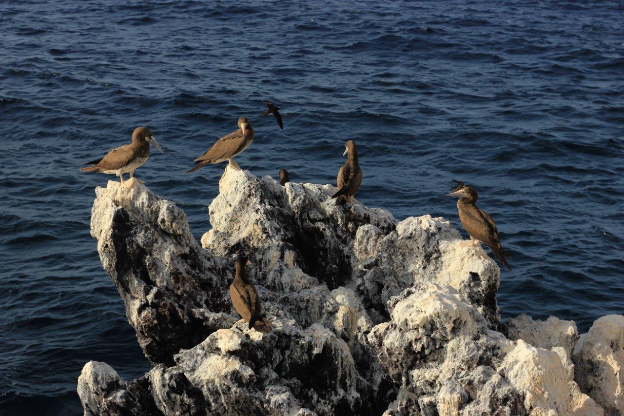Offshore around the island, many cetacean species including the porpoise Steno bredanensis, bottlenose dolphins Tursiops truncatus, pan-tropical spotted dolphins Stenella attenuata, humpback whales Megaptera novaeangliae, sperm whales Physeter macrocephalus and Gervais’ beaked whales Mesoplodon europaeus are seen.