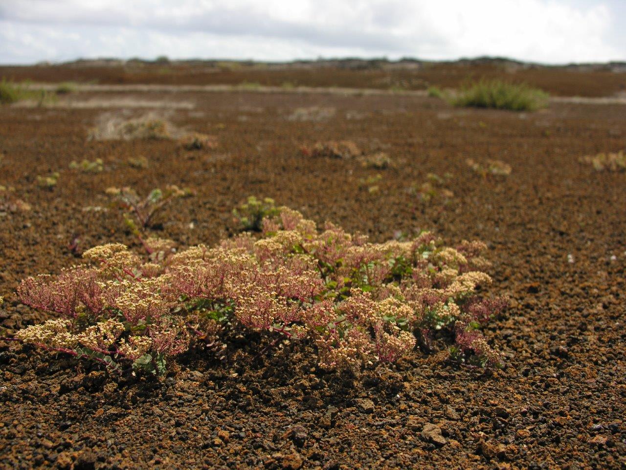 Several endemic plants are restricted to Green Mountain, and its slopes; these include the ferns Xiphopteris ascensionense, Marattia purpurascens, Asplenium ascensionis and Pteris adscensionis. In 2009, a once-thought extinct parsley fern Anogramma ascensionis was rediscovered here and efforts are being deployed to ensure its survival. The endangered tiny tussock-grass Sporobolus caespitosus also occurs here as well as in a few places on the northern and eastern slopes of coastal hills. The flowering endemic plant, Ascension spurge Euphorbia origanoides, also occurs here.