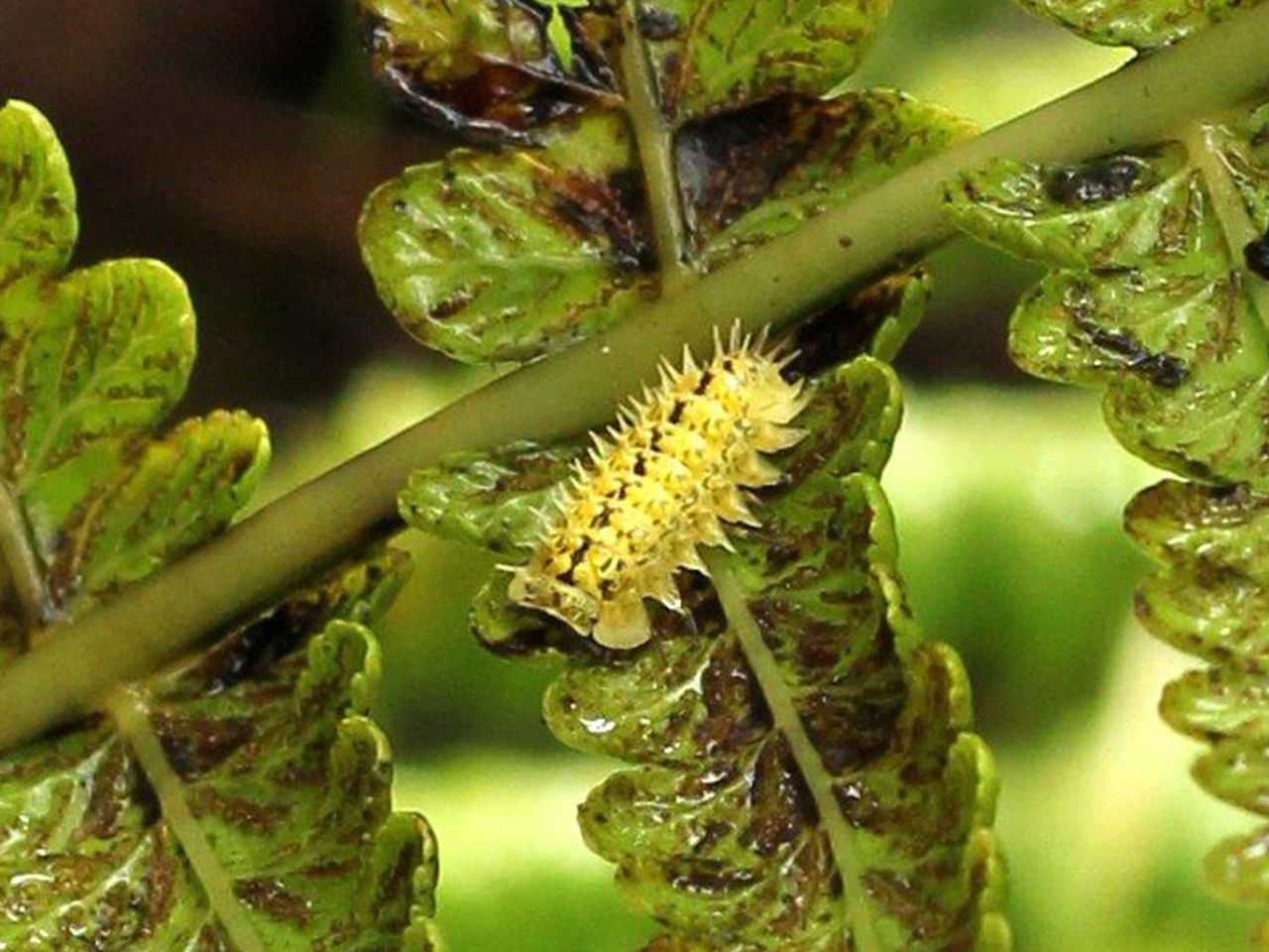 The island’s endemic flora consists of approximately 51 flowering plants and ferns and 25 bryophytes (mosses, liverworts and hornworts). The lichen flora is highly diverse, with approximately 223 species occurring on the island. This includes nine endemic species. Perhaps the most significant in terms of endemic species is the occurrence of over 1000 land invertebrates; over 500 of these are unique to St Helena including several species of spiders and the spiky yellow woodlouse Pseudolaureola atlantica, with species still being identified. Several studies on the invertebrate fauna continue. In 2015, it was reported that two species of wasps have been described belonging to a whole new genus, Helenanomalon. Although attempts were made to conserve it, in 2004, the St Helena Olive was declared extinct, due to clearance of forests and introduction of feral goats. Populations of other native plants were also significantly impacted.