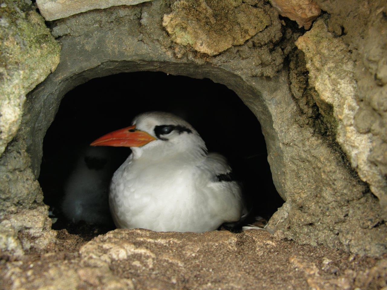 Nonsuch Island to the northeast of Bermuda at the eastern end of Castle Bay supports the largest populations of several rare, endemic and native plant species, and represents the largest single example of upland and coastal native forest without any significant introduced species. The Bermuda petrel or cahow Pterodroma cahow, thought to be extinct for 400 years, was rediscovered in the late 1940s nesting in tiny islets near here. Over some 65 years, intensive conservation action has protected and rebuilt the nests, culminating in the successful re-establishment of the species on the higher and larger Nonsuch. It supports also significant percentages of the world population of several other species, including the white-tailed tropic-bird Phaethon lepturus, the Bermuda skink Eumeces longirostris and the snail Poecilozonites circumfirmatus.
