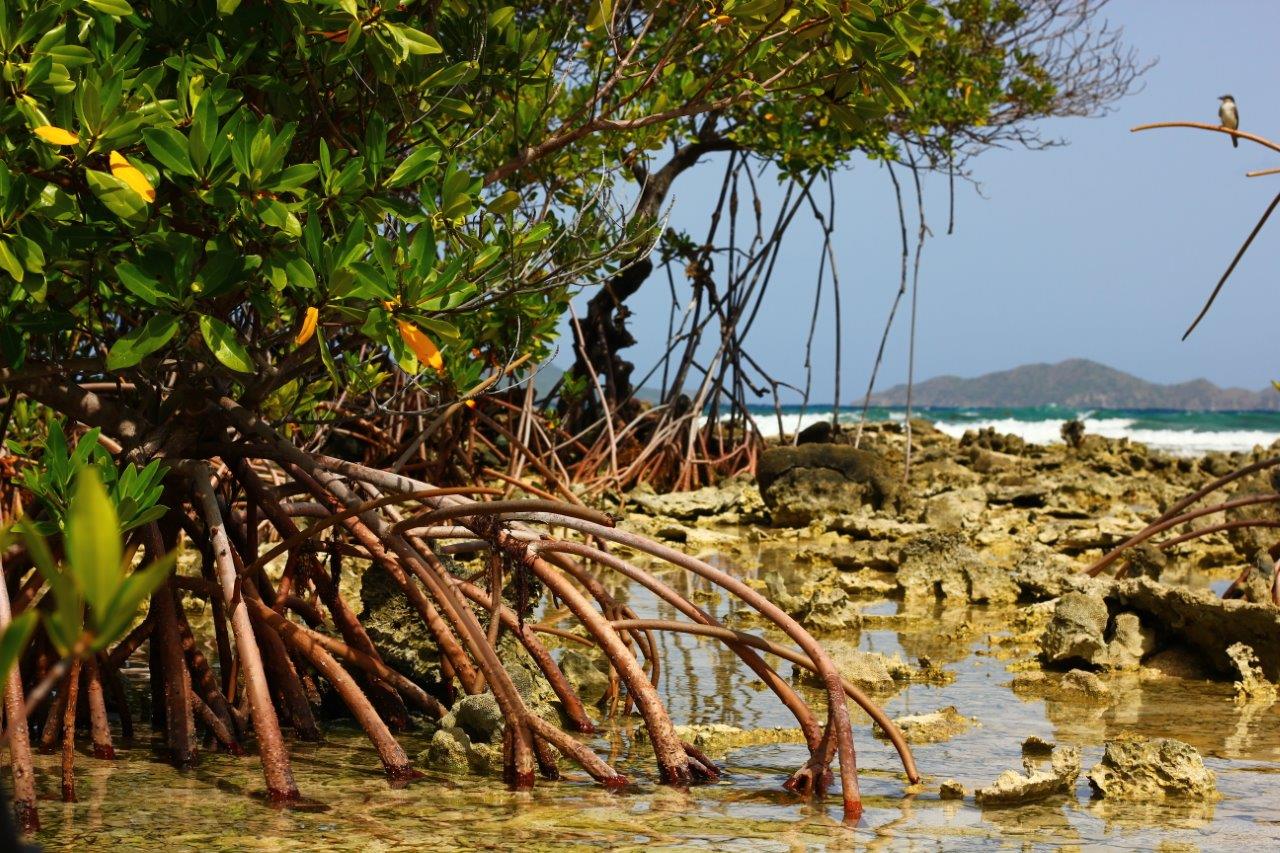 BVI has 380 km² of coral reefs that range in size from small fragments of a few square metres to the Anegada reef which is made up of close to 77 km² of coral. The archipelago also has 580 hectares of mangroves (of which 75% are found in Anegada). There are also sea grasses, sandy stretches, and sub-marine hills and vales