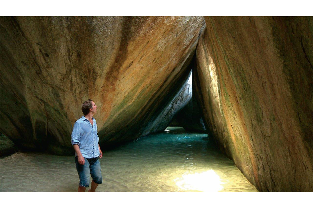 The Baths on Virgin Gorda are an unusual geologic formation, where giant granite boulders, showing evidence of the island’s volcanic origins, lie in piles on the beach, forming scenic grottoes that are open to the sea. These are very popular with tourists.