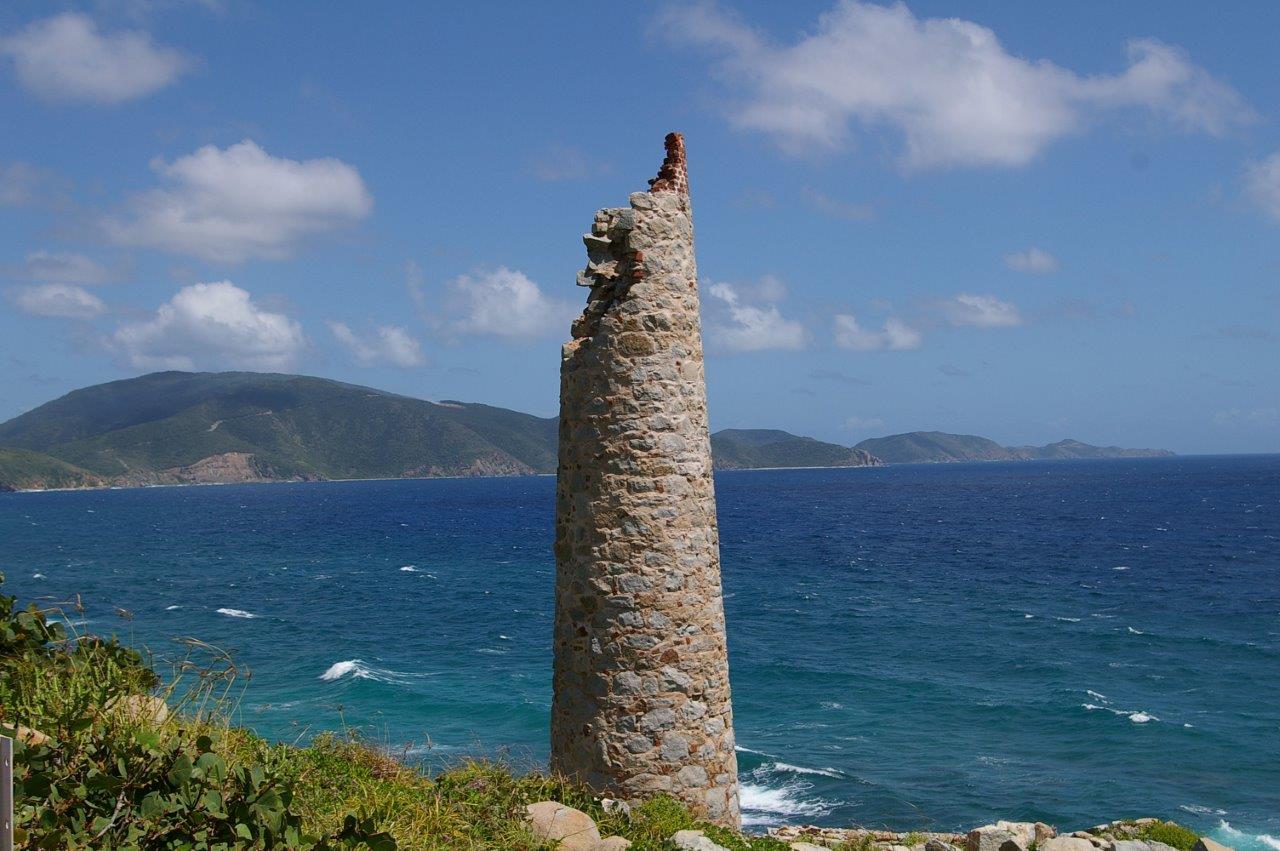 The Copper Mine Point national park, located on Virgin Gorda’s southwest tip, was mined by Cornish miners between 1838 and 1867, and perhaps even earlier by the Spanish. Today the remains of the chimney, boiler house, cistern and mine shafts can be seen. These are currently being restored.