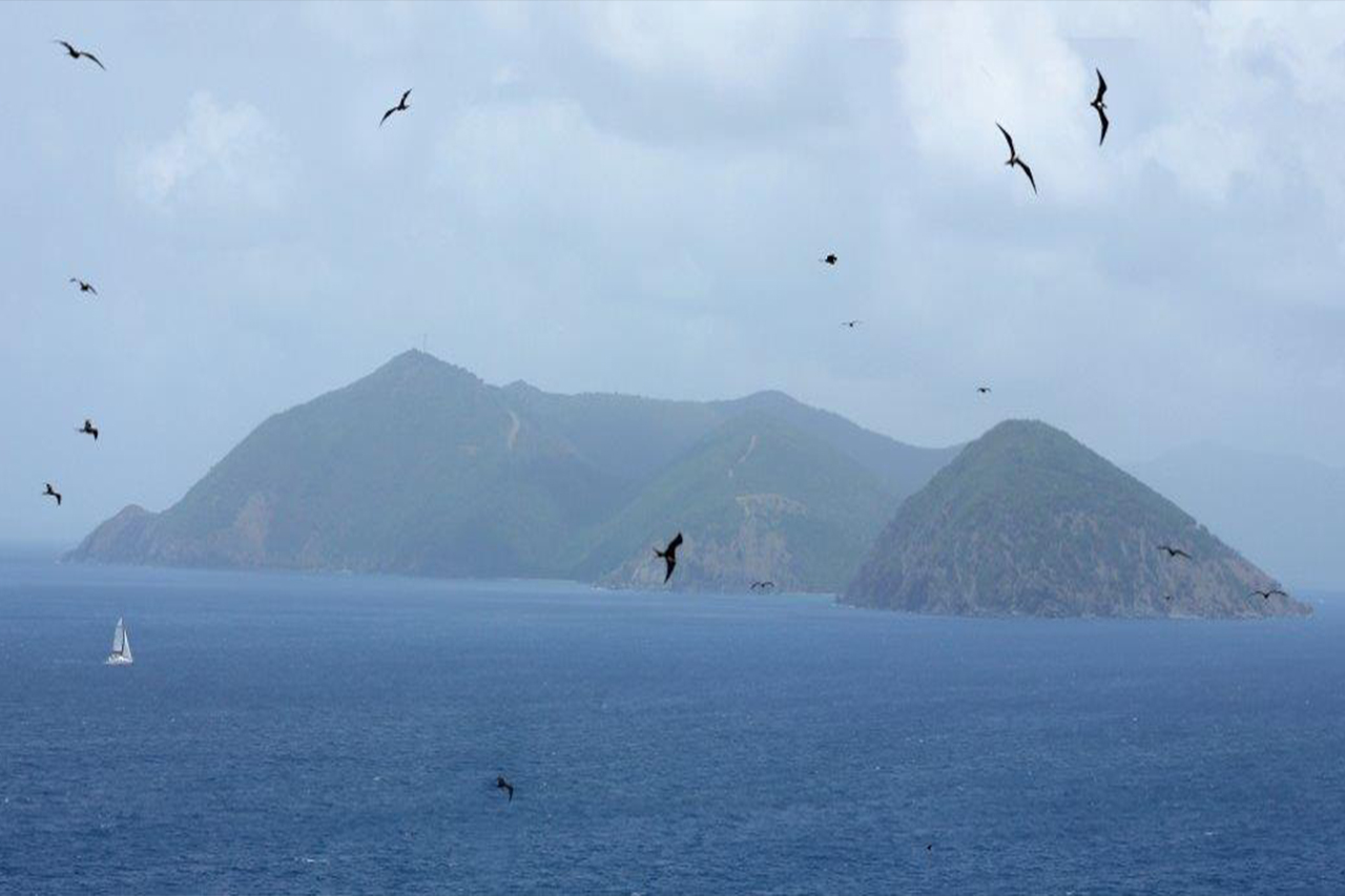 Great Tobago, part of the Little Tobago/Great Tobago National Park towards the north-west of the archipelago, is an important site for breeding seabirds and is the only nesting site in the BVI for the magnificent frigate birds Fregata magnificens.