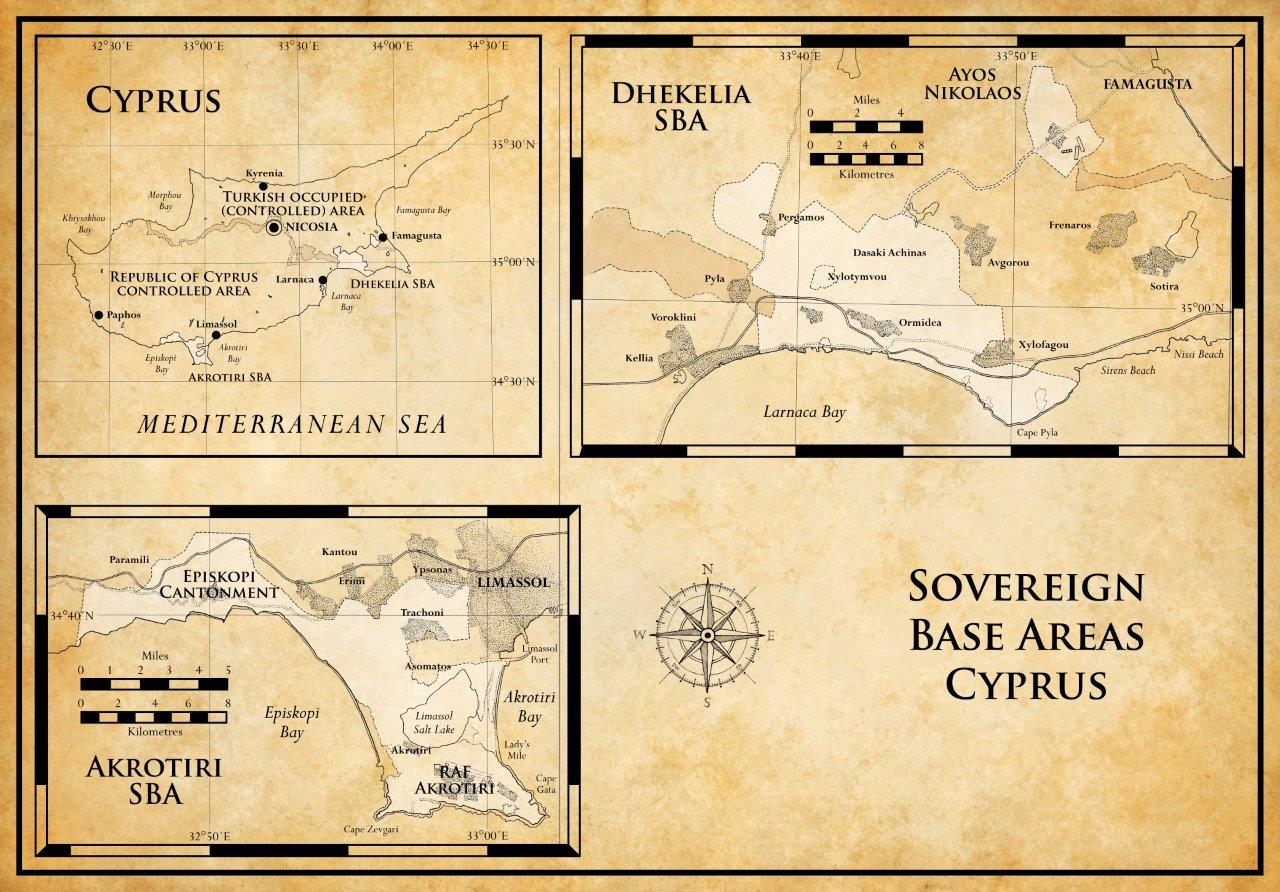 The British Sovereign Base Areas of Akrotiri and Dhekelia comprise those parts of Cyprus which stayed under British jurisdiction and remained British sovereign territory when the 1960 Treaty of Establishment created the independent Republic of Cyprus.
