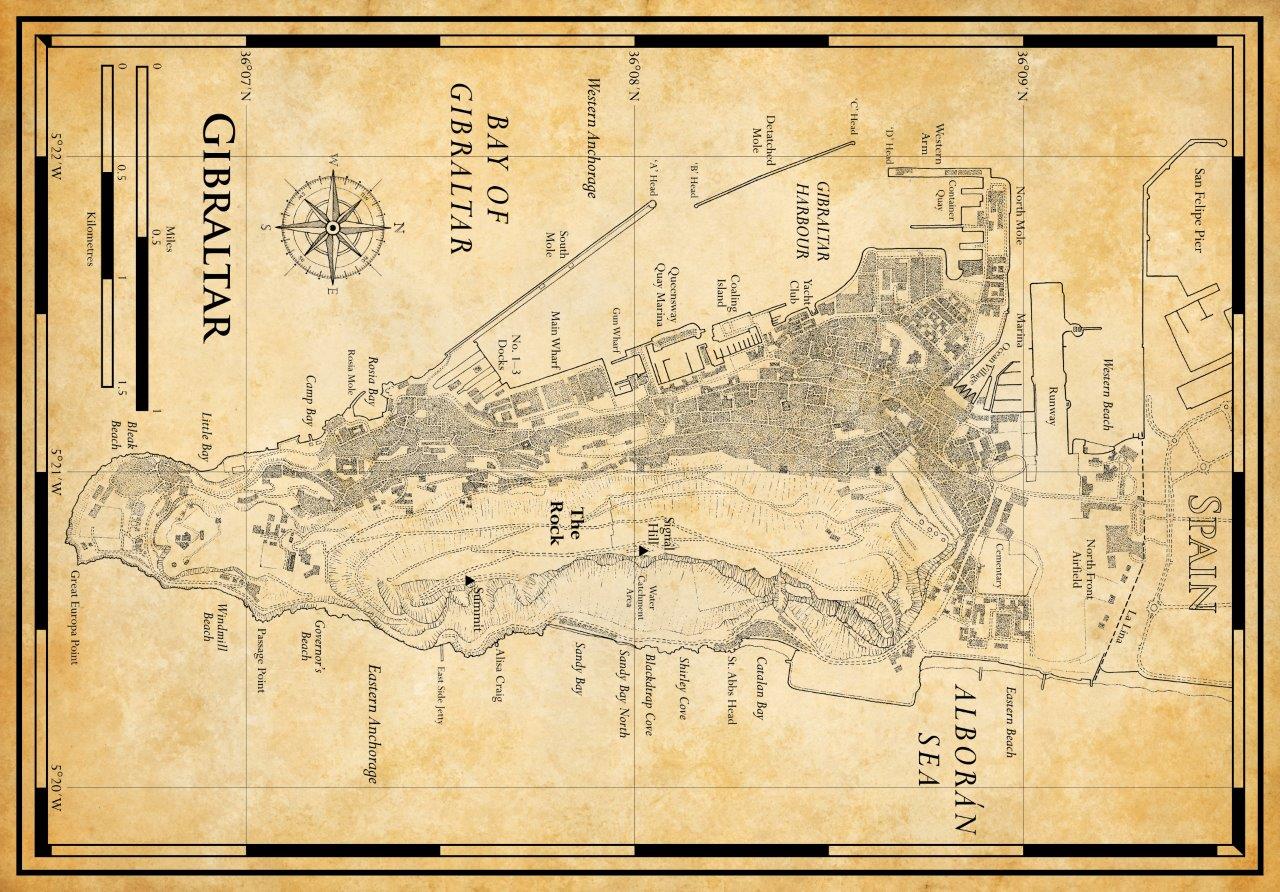 Gibraltar (often called The Rock) is a narrow peninsula, 7km long, linked to Spain by a low, sandy isthmus. A Mediterranean wildlife community survives on the impressive limestone cliffs and slopes with their scrub, patches of woodland, caves and rocky shoreline. A steep cliff rises from the Mediterranean on the east to 398m. On the west, the Rock slopes more gradually through scrubland, with the city (where most of the approximately 28,000 people live) nestled at the foot, partly on land claimed from the sea. To the south are a series of stony terraces.