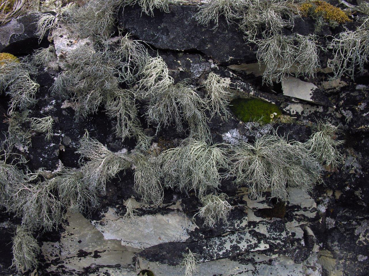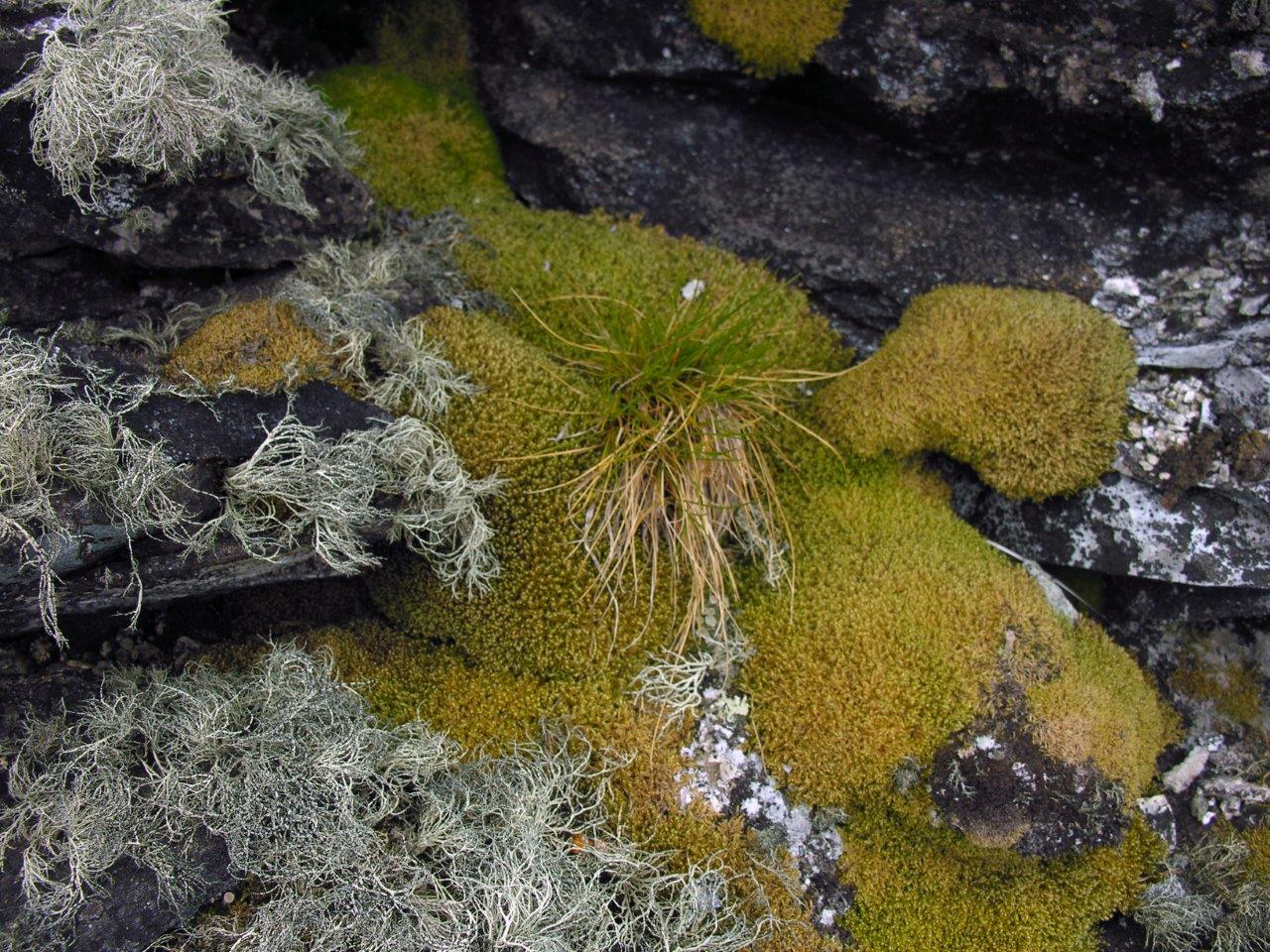 On land, although vegetation is sparse, there are many types of lichen, moss and algae. In the surrounding seas, vast quantities of krill Euphausia superba provide the basis for rich marine life. This includes whales, seals and very large numbers of birds, especially petrels and penguins, inhabiting the islands and coastal areas of the Peninsula. Adélie Pygoscelis adeliae and emperor penguins Aptenodytes forsteri both breed on the continent itself.